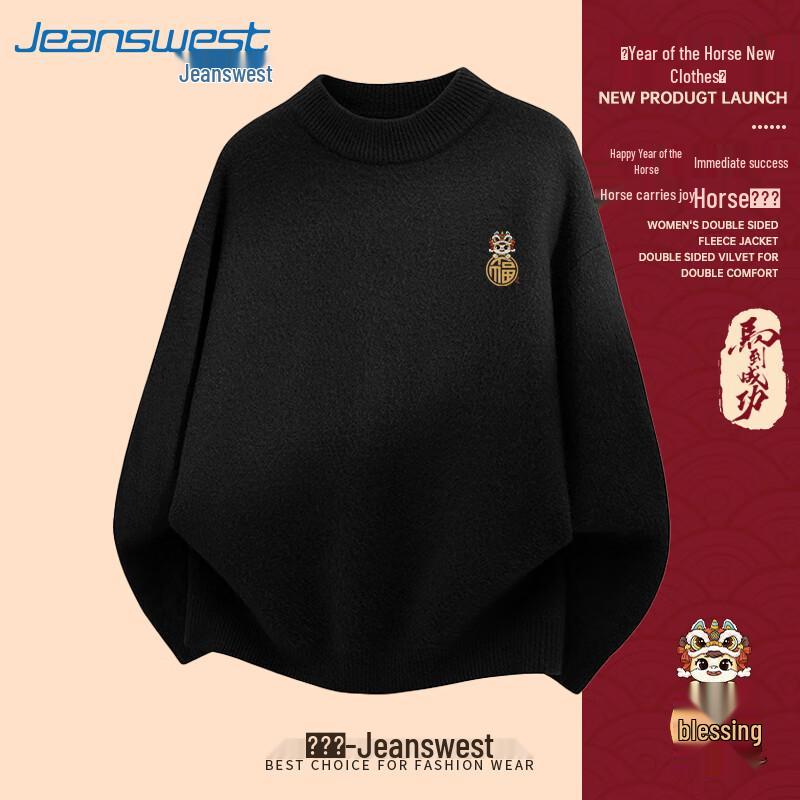 Мужской трикотажный свитер Jeanswest с принтом «Счастливая лошадь» и полувысоким воротником