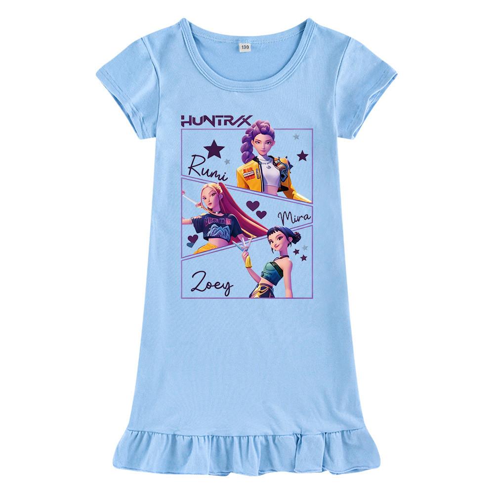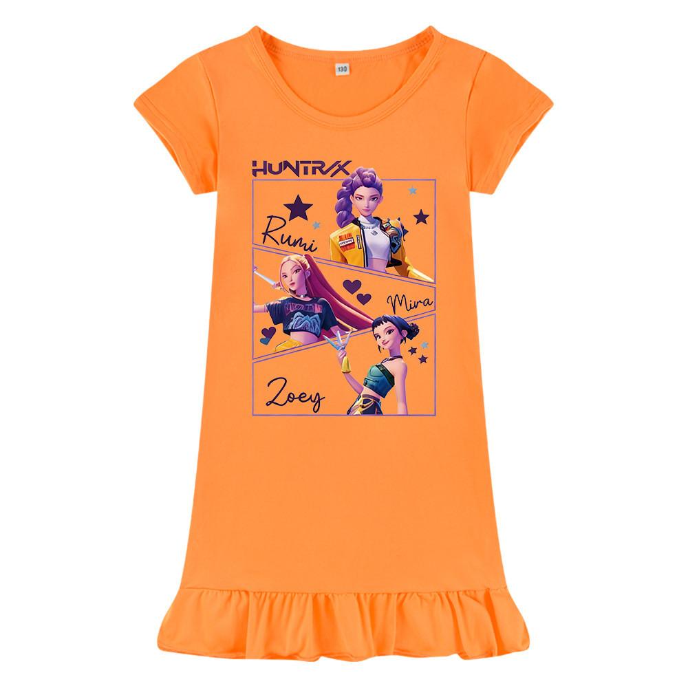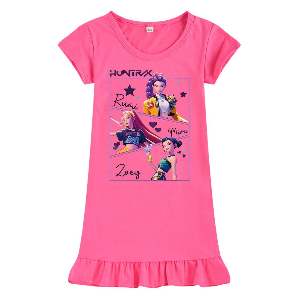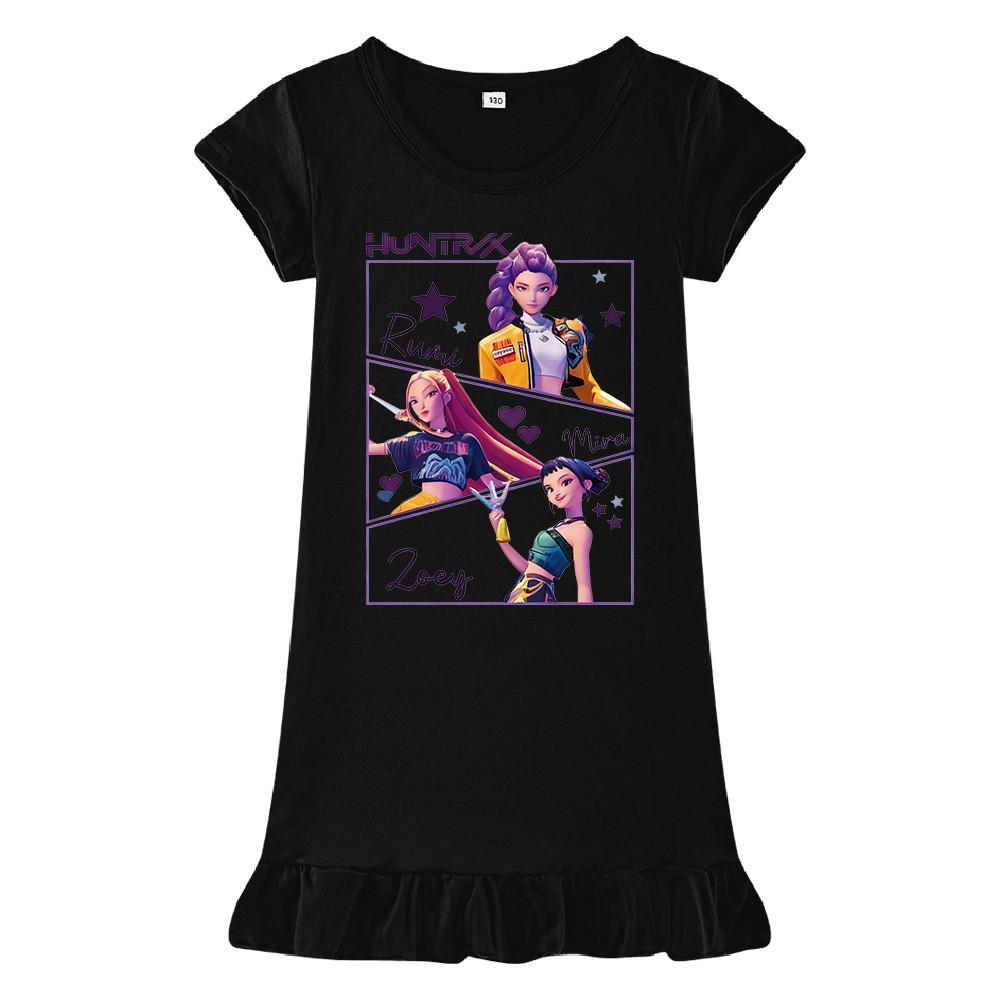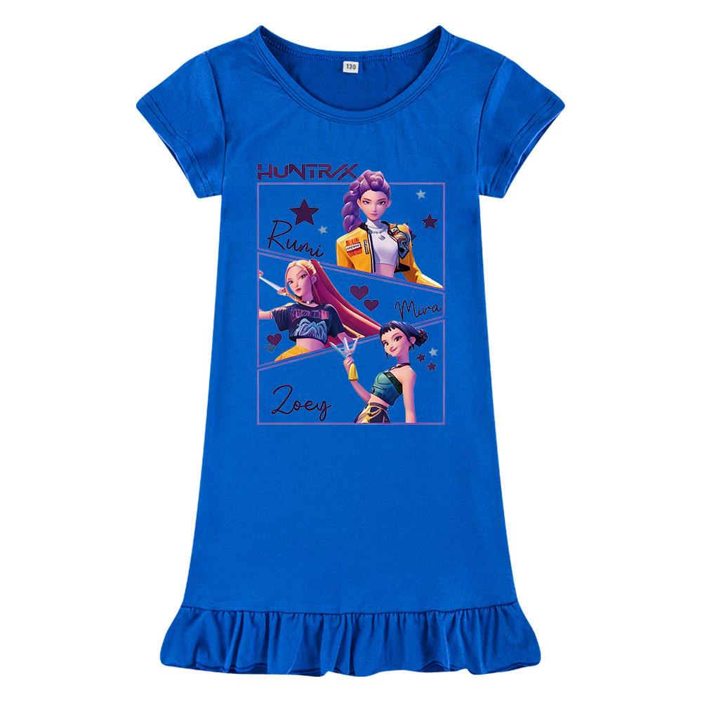 M1241 Детское платье для девочек Kpop Rumi Zoey Mira с принтом, короткими рукавами и оборками
