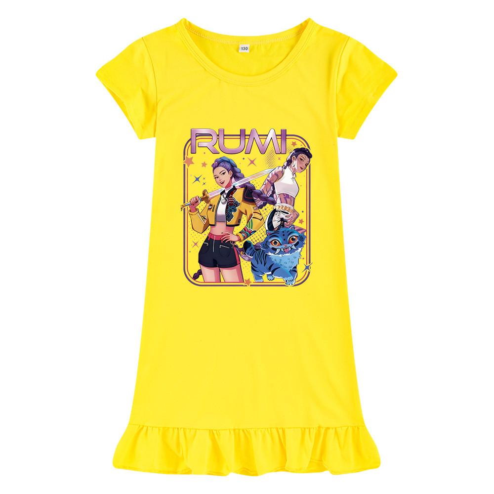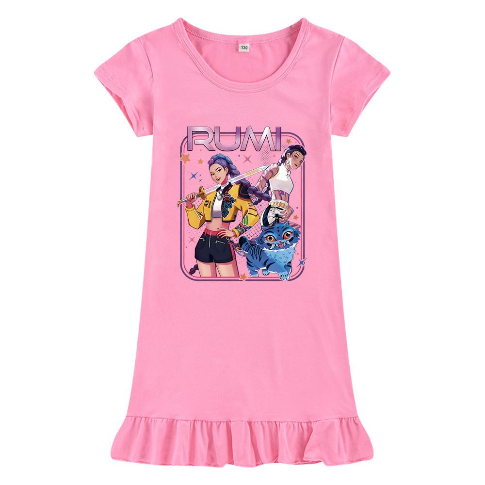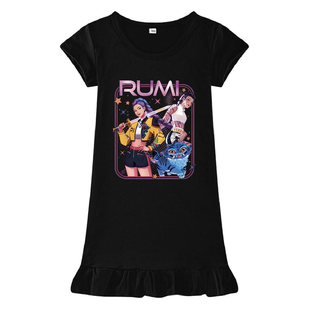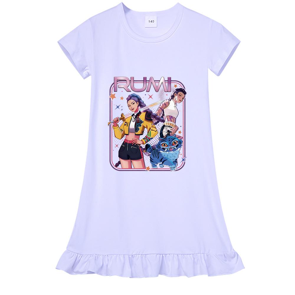 M1249 Детское платье для девочек Kpop с принтом Руми Зои Мира, с короткими рукавами и оборками