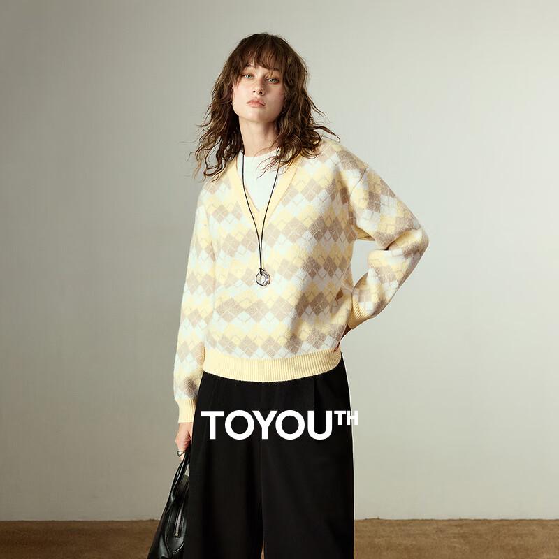 Chuyu Women's Diamond Jacquard Double Collar Knit Sweater — купить товар онлайн с бесплатной доставкой по всему миру!
