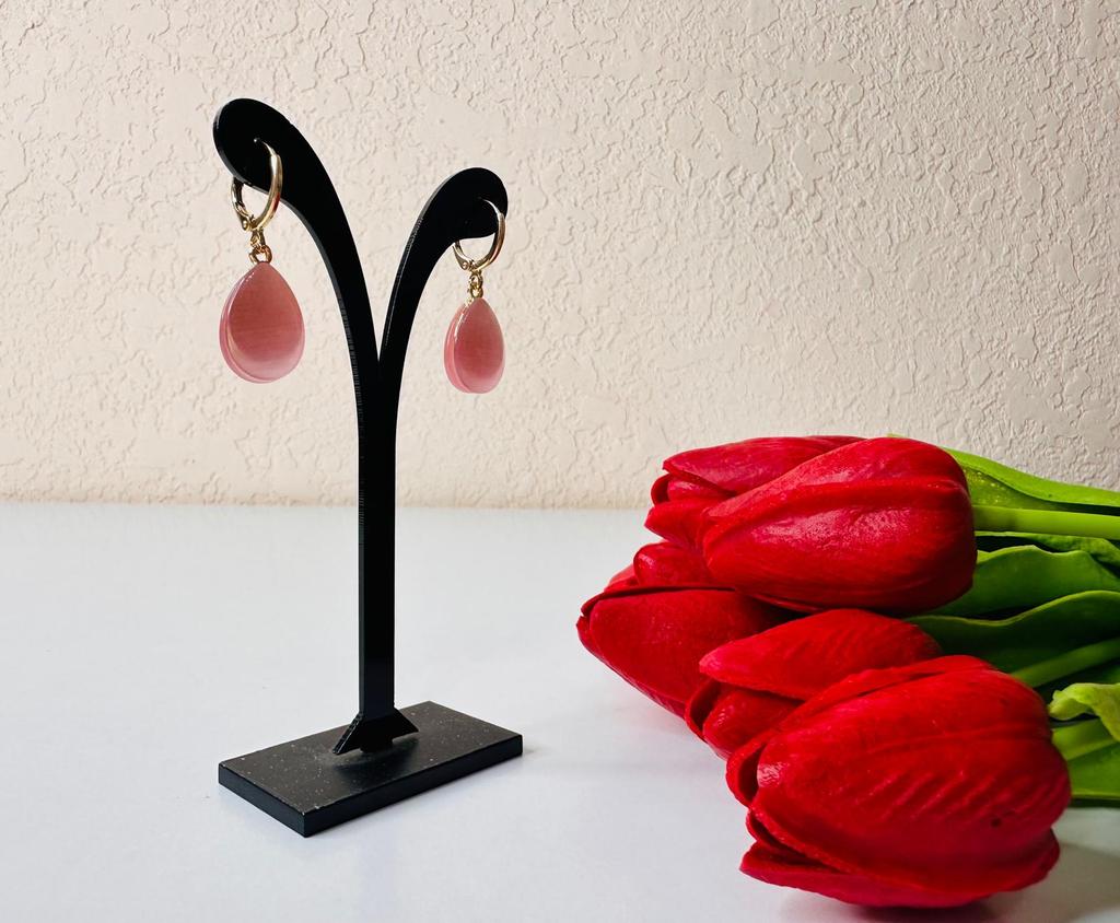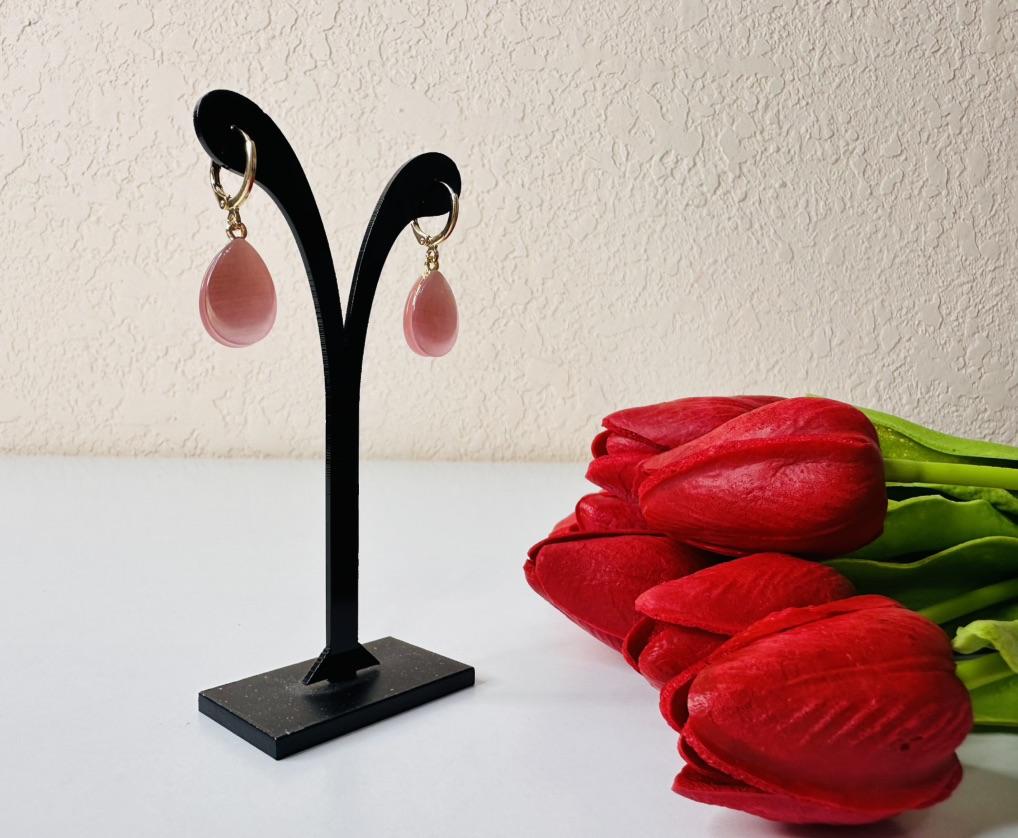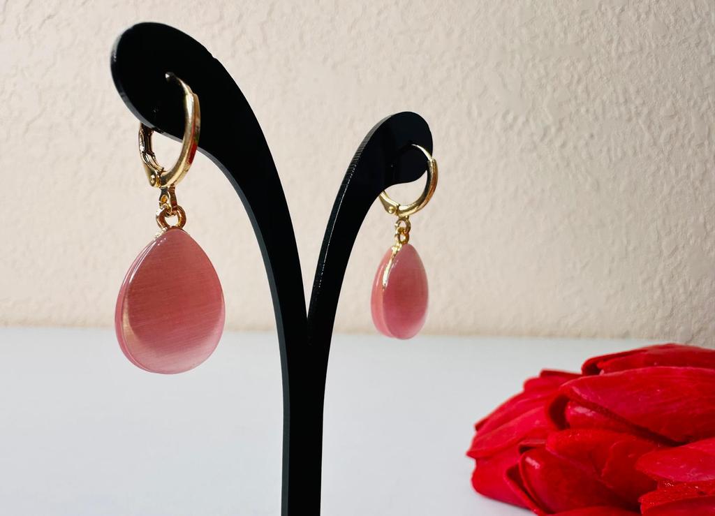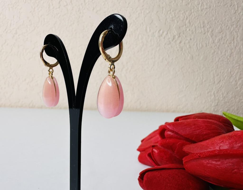 Элегантные минималистичные розовые серьги-капли с металлом и драгоценным камнем для повседневной и праздничной носки
