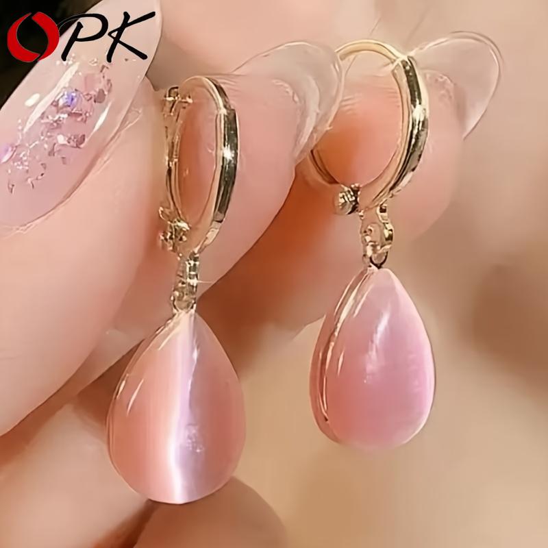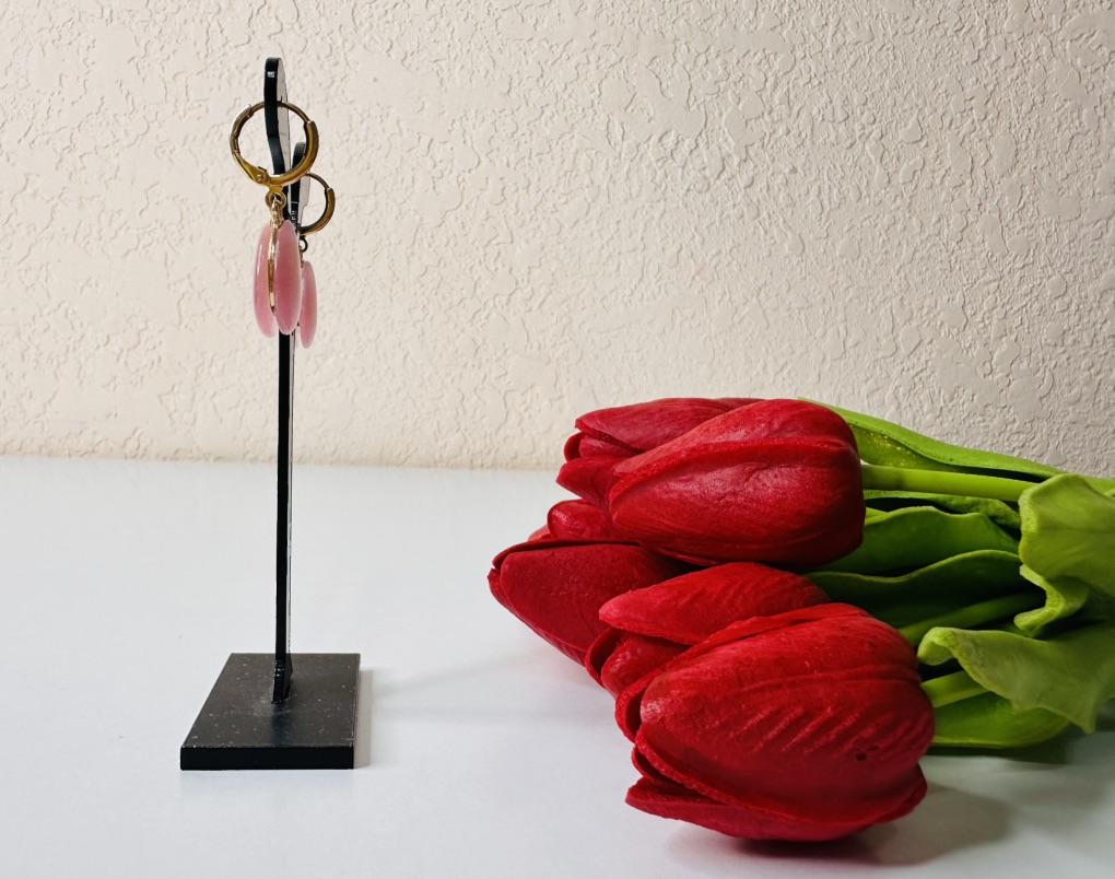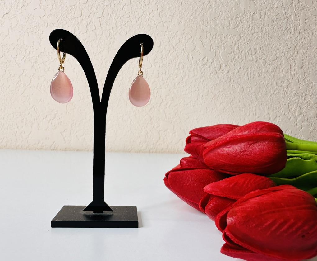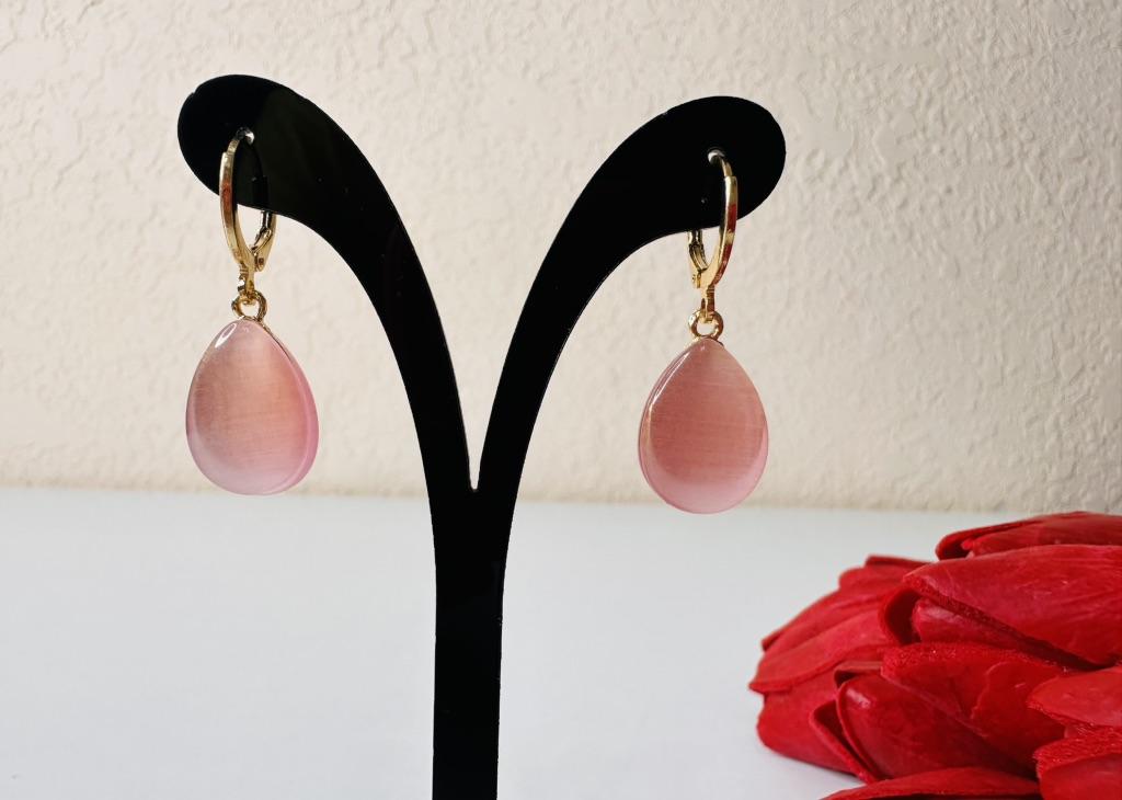 Элегантные минималистичные розовые серьги-капли с металлом и драгоценным камнем для повседневной и праздничной носки