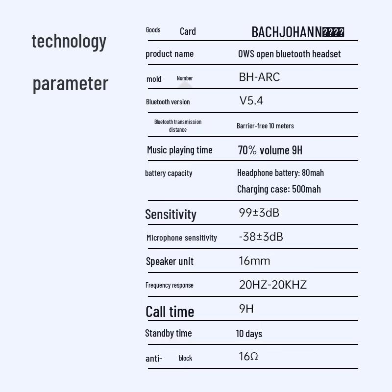 Bach Johann BH-ARC Wireless Open-Ear Sports Earphones