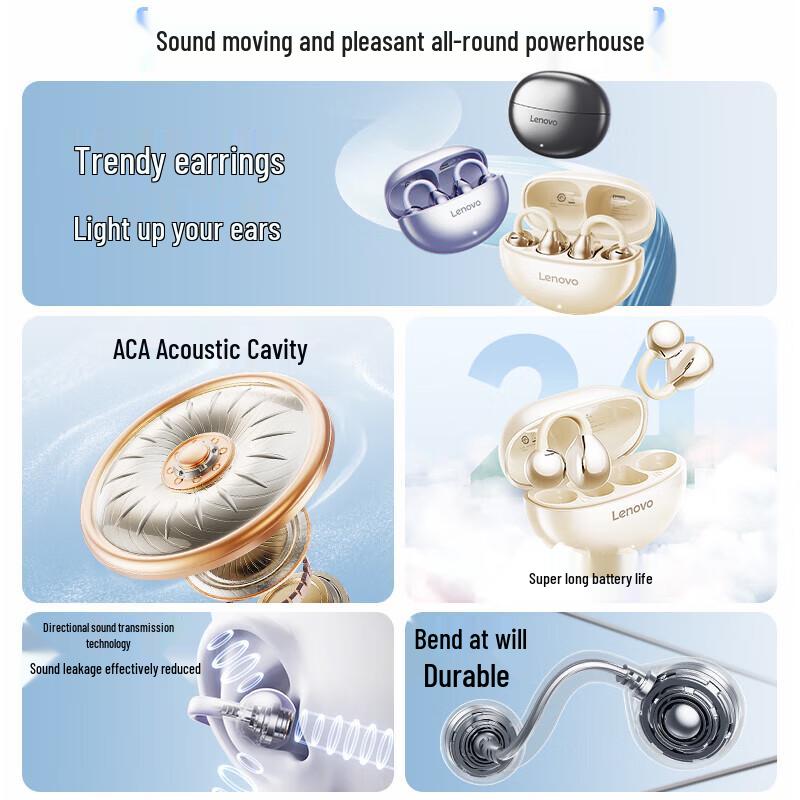 Lenovo TA410 Open-Ear Clip-On Bluetooth 5.4 Headphones