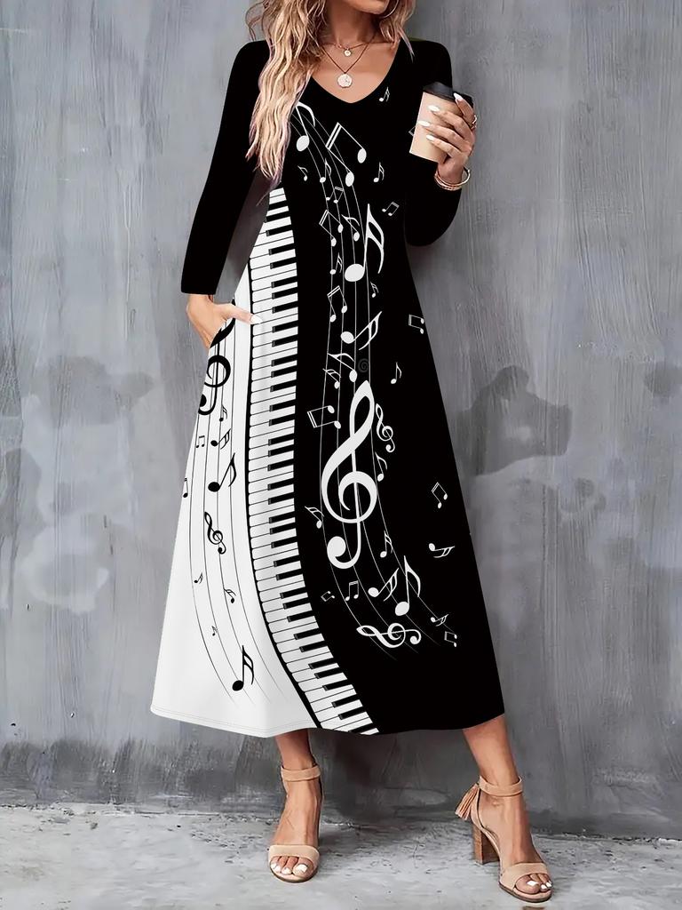 2025 Осень и Зима Новое Женское Повседневное Модное Платье Осень 3D Принт Бабочки Длинный Рукав V-образный вырез A-силуэт Платья