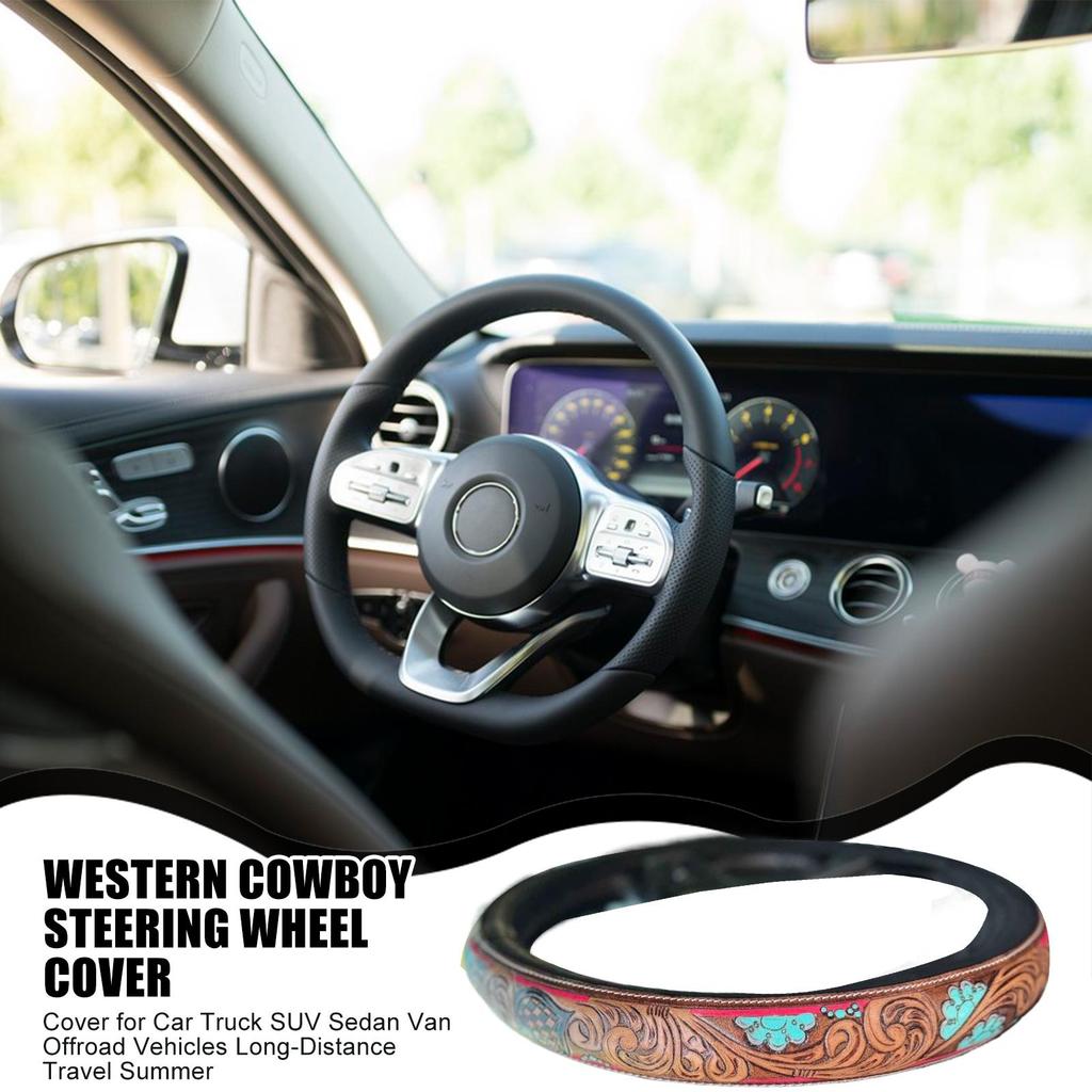 Чехол на руль Ковбойский декор Для интерьера грузовика Износостойкий Дышащий Чехол на руль Для автомобиля Грузовика Внедорожника Седана Минивэна