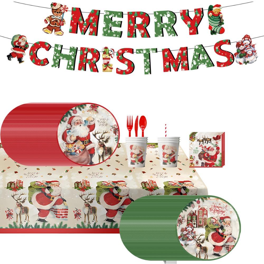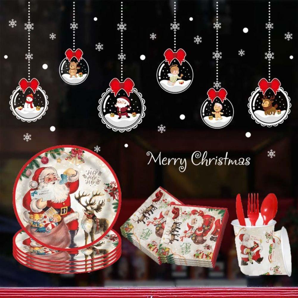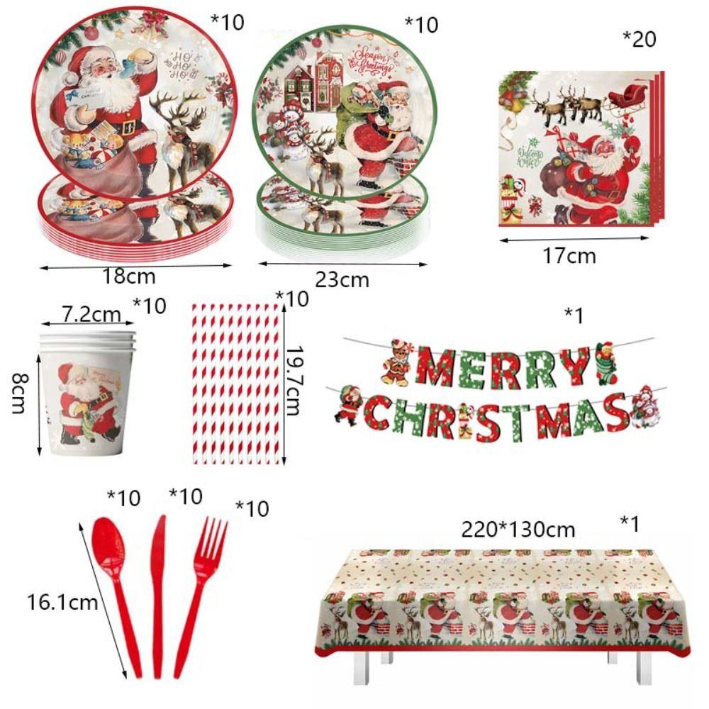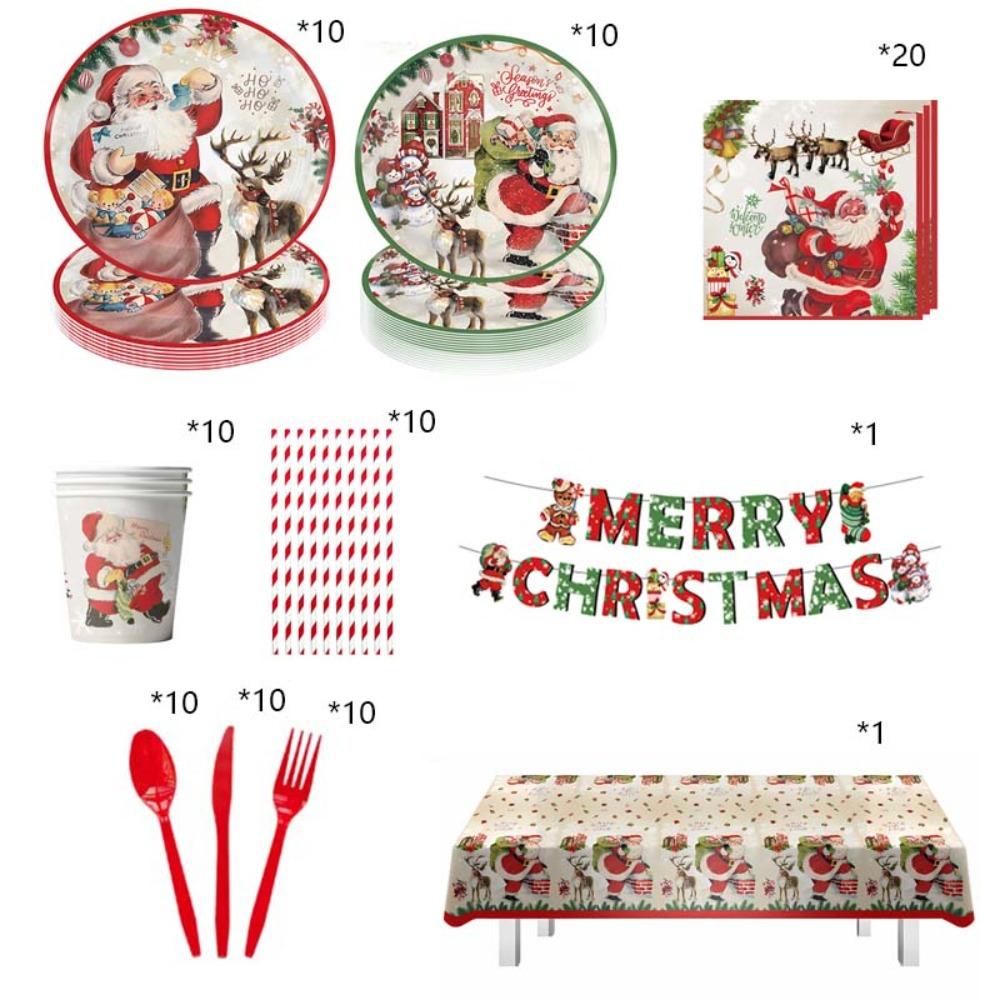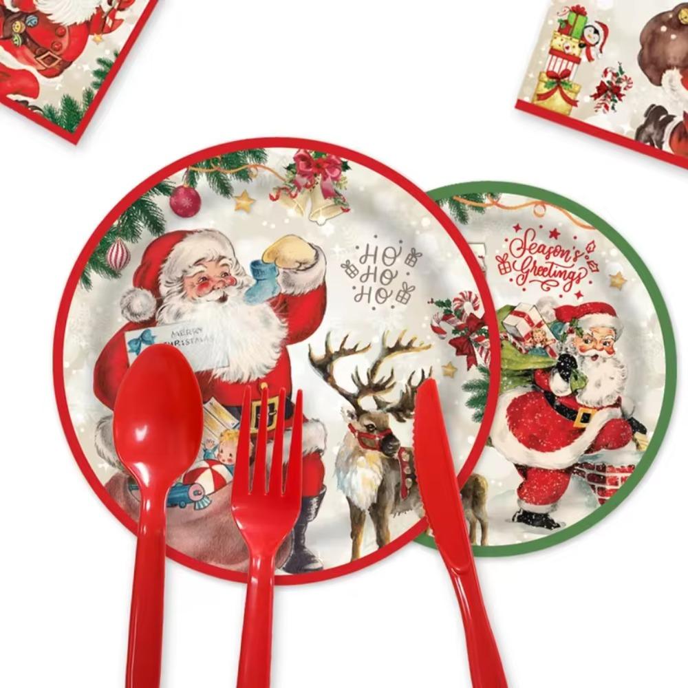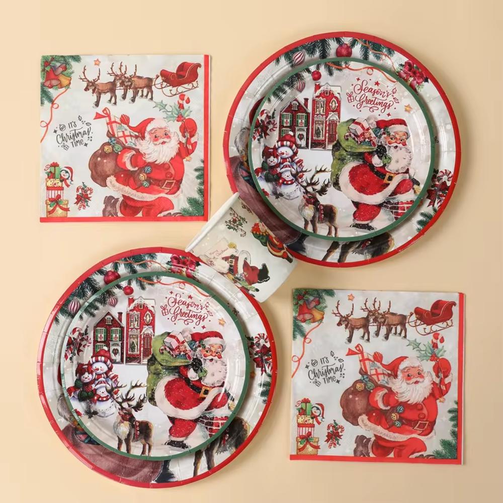 Thickened Party Dinnerware Set Santa Claus Print Paper Plate and Cups Navidad