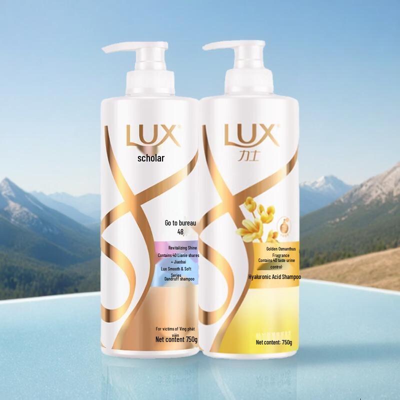 This LUX twin pack includes two 750g bottles of Revitalizing Anti-Dandruff & Brightening Shampoo. Formulated with hyaluronic acid, it effectively targets dandruff while enhancing hair's natural luster and providing deep hydration. Infused with a delicate Golden Osmanthus fragrance, it helps repair damaged and dull hair, leaving it soft, shiny, and beautifully scented. Ideal for various scalp types and normal hair.