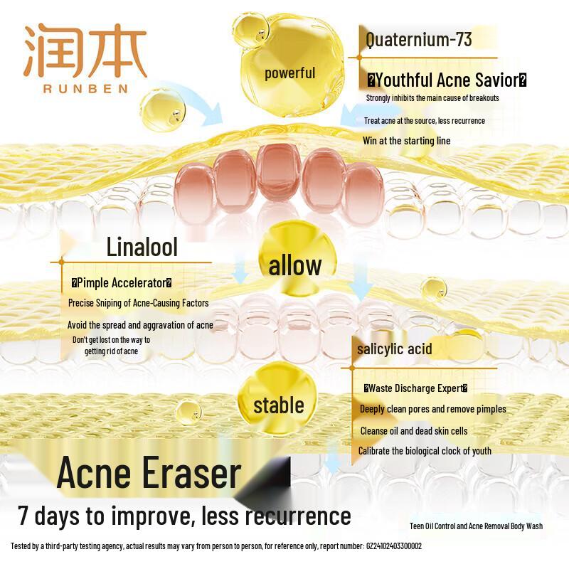RUNBEN Подростковый шампунь против перхоти и набор для мытья тела от акне