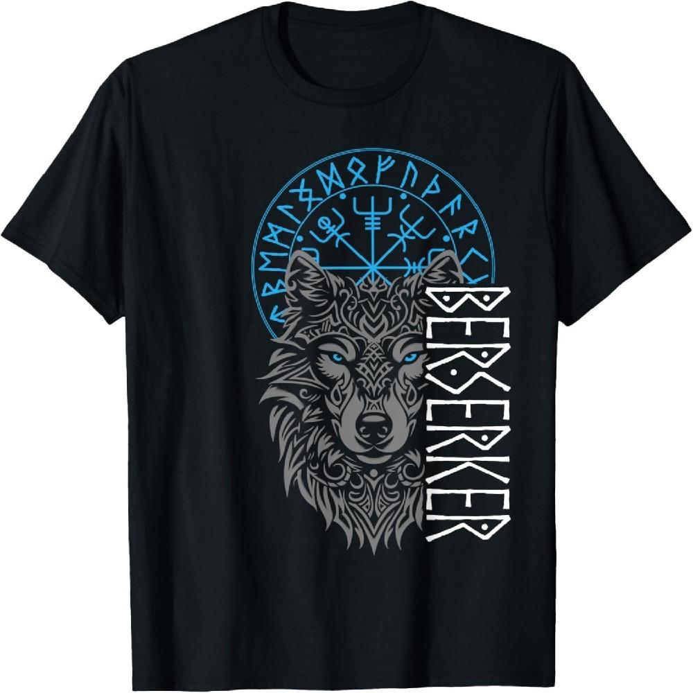 Берсерк и Компас Викинга - Футболка с Дизайном Северного Волка, Маленький, Черный
