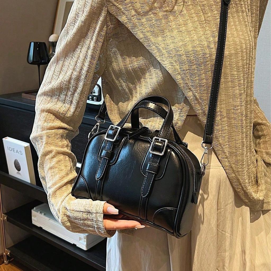 Модная Простая Универсальная Ретро Повседневная Дорожная Однотонная Женская Черная Сумка Тоут Сумка на Плечо Сумка Кроссбоди