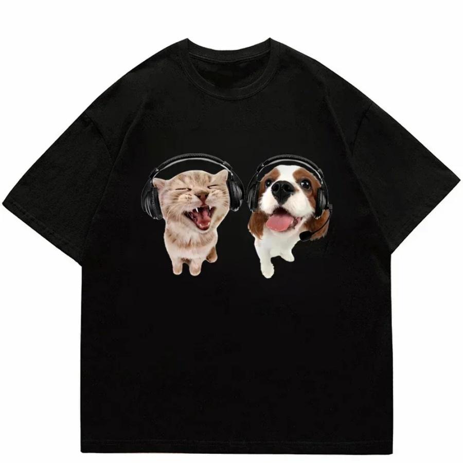 Футболка Женская Мода Лето Мужская Женская Унисекс Хип-Хоп Милый Кот Харадзюку Y2K Печать Повседневная Уличная Фитнес хлопок