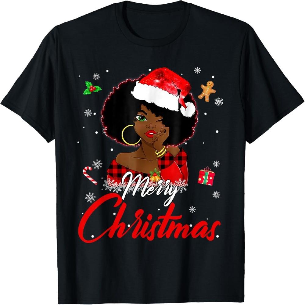 Черная африканская девушка американский меланин Рождество шапка Санты Рождественская футболка