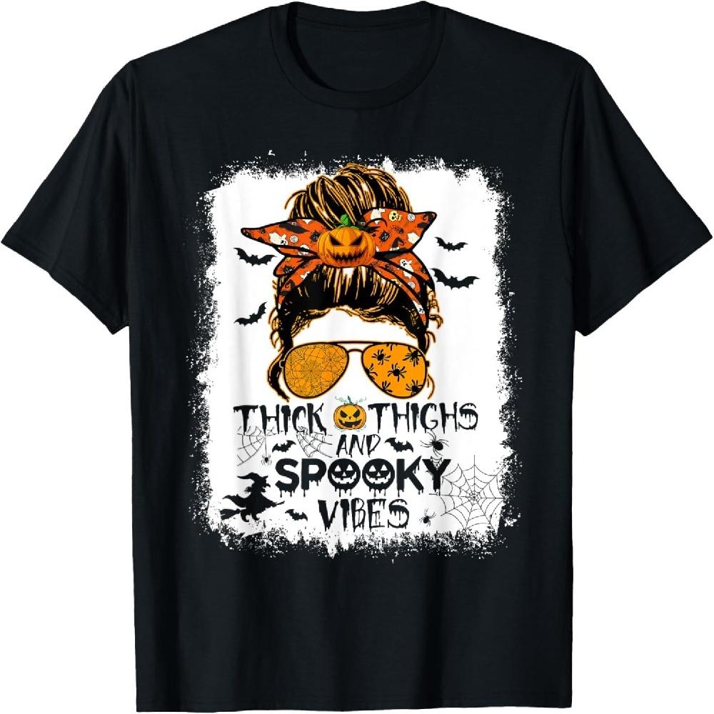 Bleached Women Messy Hair Bun Thick Thighs And Spooky Vibes T-Shirt