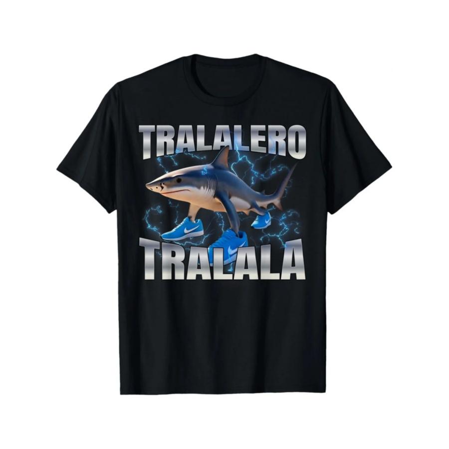Смешная графическая футболка Tralalala - Дизайн с акулой и молнией с текстом Tralalala, Унисекс футболка в богемном стиле