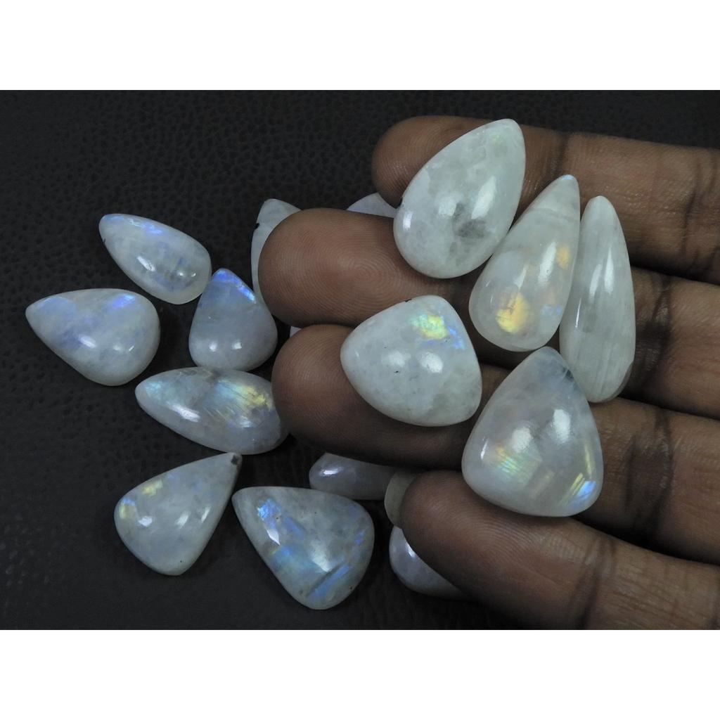 340Cts. Natural Rainbow Moonstone Pear Cabochon Loose Gemstone 22Pcs Lot C-706