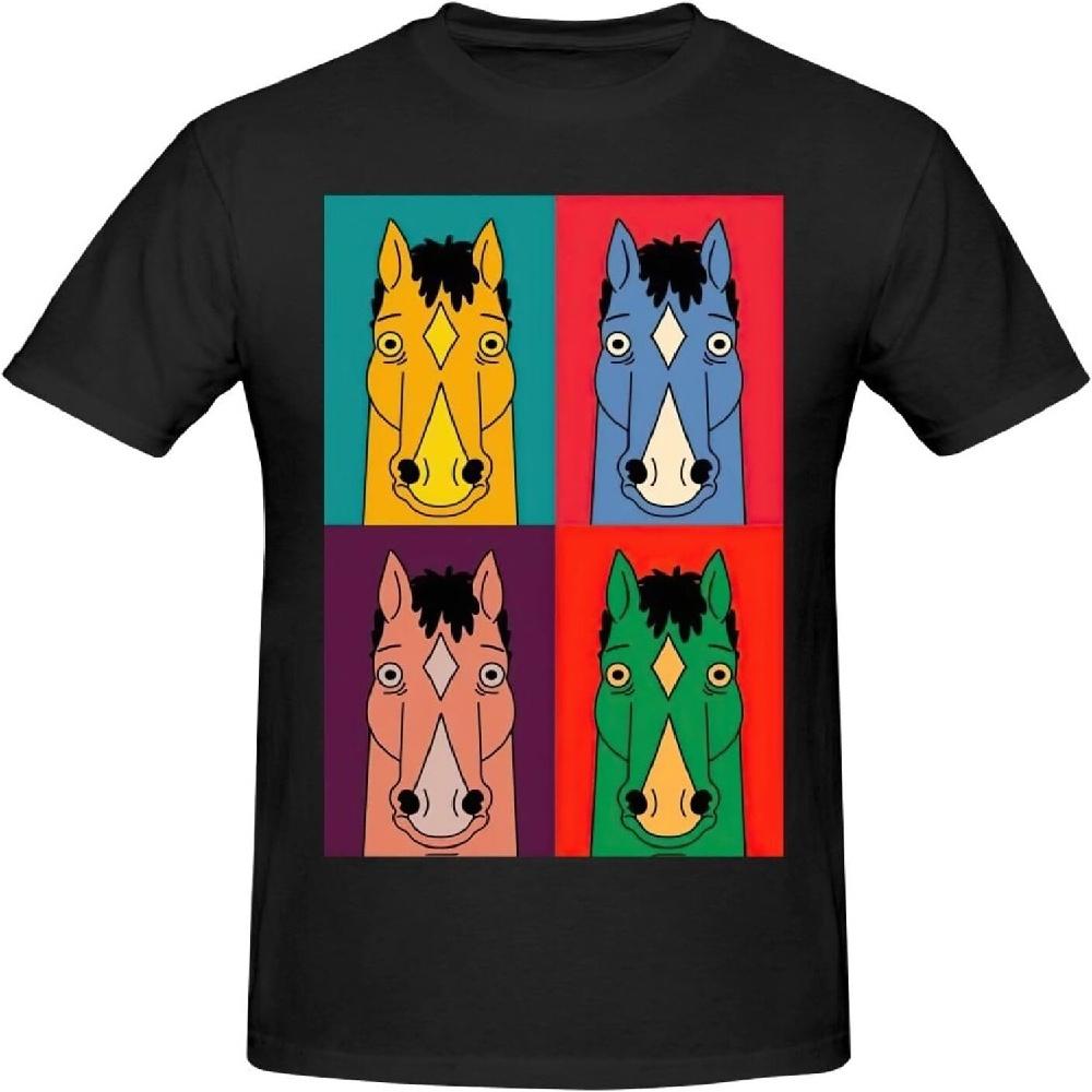 БоДжек Лошадь Синемальный Анимационный Мужская Футболка Хлопок Графический Короткий Рукав Круглый Вырез Футболки Повседневные Топы Черный Маленький2