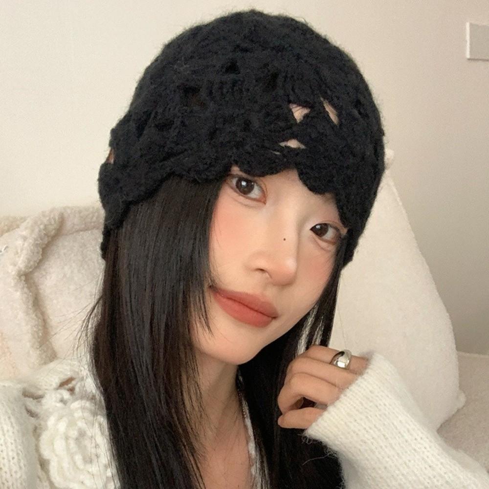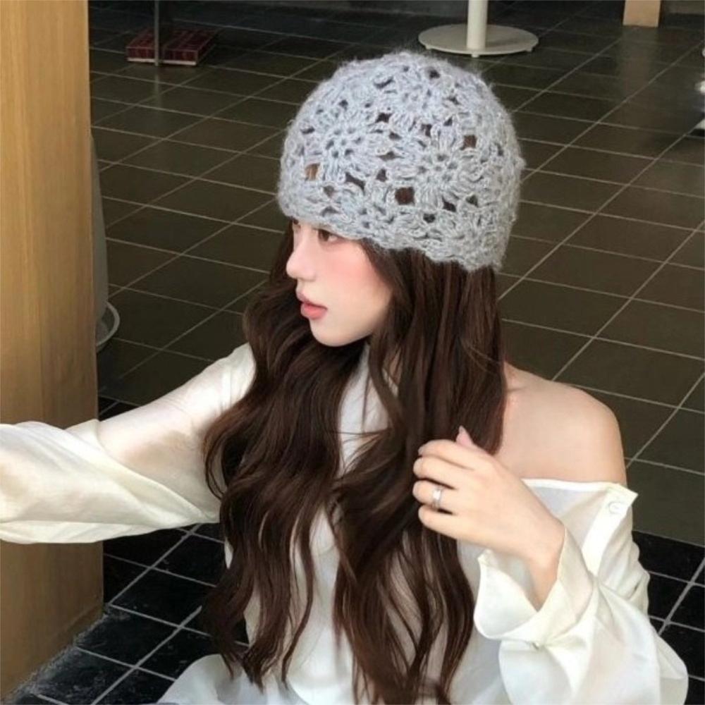 Hollow Knitted Pullover Hat Solid Color Beanies Cap Casual Crochet Flower Hat Streetwear