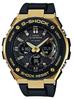 G-SHOCK, бренд часов, который продолжает развиваться в погоне за прочностью, представляет новую модель G-STEEL с уменьшенным дизайном и расширенными вариантами дизайна.. Сохраняя ту же традиционную многослойную конструкцию и функциональность, весь корпус был уменьшен примерно на 90%*. Значительная миниатюризация модуля позволила создать корпус меньшего размера и толщины, что привело к созданию часов среднего размера.. Внимание к деталям, включая ударопрочные полимерные индексы, имеет нанесенное на поверхность покрытие, полученное методом вакуумного напыления и вырезанное лазером, создавая дизайн циферблата, сочетающий прочность и красоту.. Модель GST-W310D имеет безель и браслет из нержавеющей стали, создавая стандартный дизайн, который подчеркивает прочный вид металла.. Модель GST-W300 с полимерным безелем доступна с двумя видами ремешков: металл и мягкий уретан. Толстый мягкий уретановый ремешок повышает комфорт и снижает нагрузку на запястье даже при длительном ношении.. Ассортимент моделей пополнился моделью GST-W300BD, отличающейся смелым черным ионно-плазменным покрытием.; GST-W300, отличающийся повседневным дизайном с полимерным безелем и корпусом из нержавеющей стали; и GST-W300G, с крутым золотистым и синим ионно-плазменным покрытием. Эти часы также обладают практичными функциями, такими как Multiband 6, поддерживающая шесть сигналов калибровки времени по всему миру, функция перемещения стрелок для обеспечения видимости ЖК-дисплея и полностью автоматическая двойная светодиодная подсветка для отличной индикации времени в темных местах.. Серия G-STEEL, расширяющая свой ассортимент прочных дизайнов за счет сочетания металлических и полимерных деталей, теперь включает модель среднего размера.. (Это золотая IP-модель GST-W300G-1A9JF.)