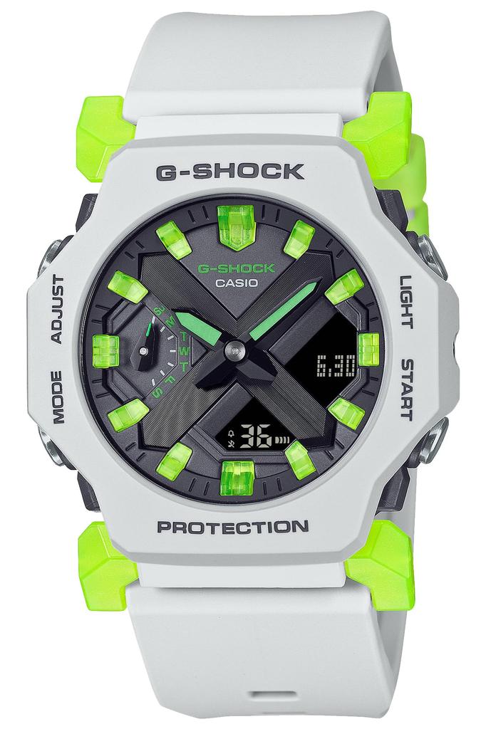 - Представляем яркую, бросающуюся в глаза серию Virtual Mix желто-зеленого цвета от G-SHOCK, прочные часы, которые продолжают развиваться в погоне за неустанной прочностью с момента их запуска в 1983 году. Базовые модели включают GA-B001 с Bluetooth®, GA-2300 с минималистичным дизайном и GD-B500 с шагомером и Bluetooth®. Основной цвет светло-серый с жёлто-зелёным (флуоресцентный зеленый) части скелета. Циферблат акцентирован различными оттенками серого и черного, создавая спортивный, футуристический дизайн.. Яркий желто-зеленый цвет привлекает внимание, делая это крутым дизайном, который можно использовать в широком диапазоне стилей, от спортивного до повседневного.