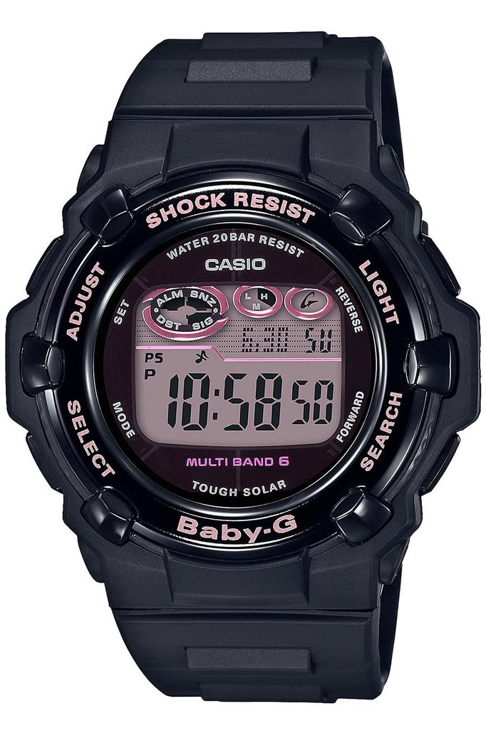 BABY-G — повседневные часы для активных женщин.. Это тонкая цифровая модель с круглым циферблатом. Эти универсальные часы, доступные в черном и золотом, белом и золотом, черном и розовом, а также в пастельно-розовом цвете, дополнят любой наряд.. Просто измените настройку домашнего города, чтобы автоматически скорректировать время как в Японии, так и за границей.. Функционально он поддерживает радиосинхронизацию времени от шести станций по всему миру и оснащен технологией Tough Solar.. Он также водонепроницаем до 20 АТМ для практичности. Он также обладает полным набором функций, включая мировое время и секундомер.. Это модель, идеально подходящая для активных женщин.