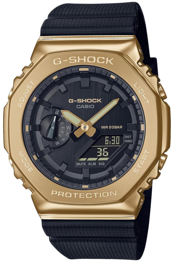 - G-SHOCK is a shock-resistant timepiece that establishes a new concept of toughness in timepieces. This model is based on the Metal Covered series and features popular black and gold colors.