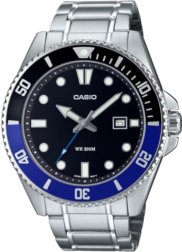 Casio Стандартные аналоговые спортивные часы, водонепроницаемость 20 АТМ, мужские MDV-107D-1A2V, черные с синим безелем, металлический браслет, модель для зарубежного рынка [параллельный импорт]