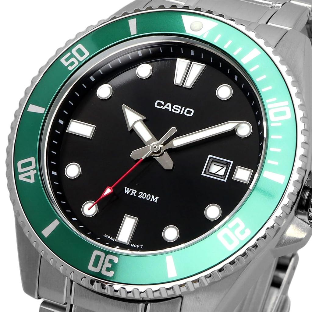 Casio Стандартные аналоговые спортивные часы, водонепроницаемость 20 АТМ, мужские, MDV-107D-3AV, зеленый безель, металлический браслет, международная модель [параллельный импорт]
