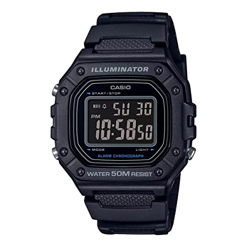 Casio Стандартные цифровые наручные часы W-218H-1BV для мужчин и женщин, черные, инвертированный ЖК-дисплей, модель для зарубежного рынка [параллельный импорт]
