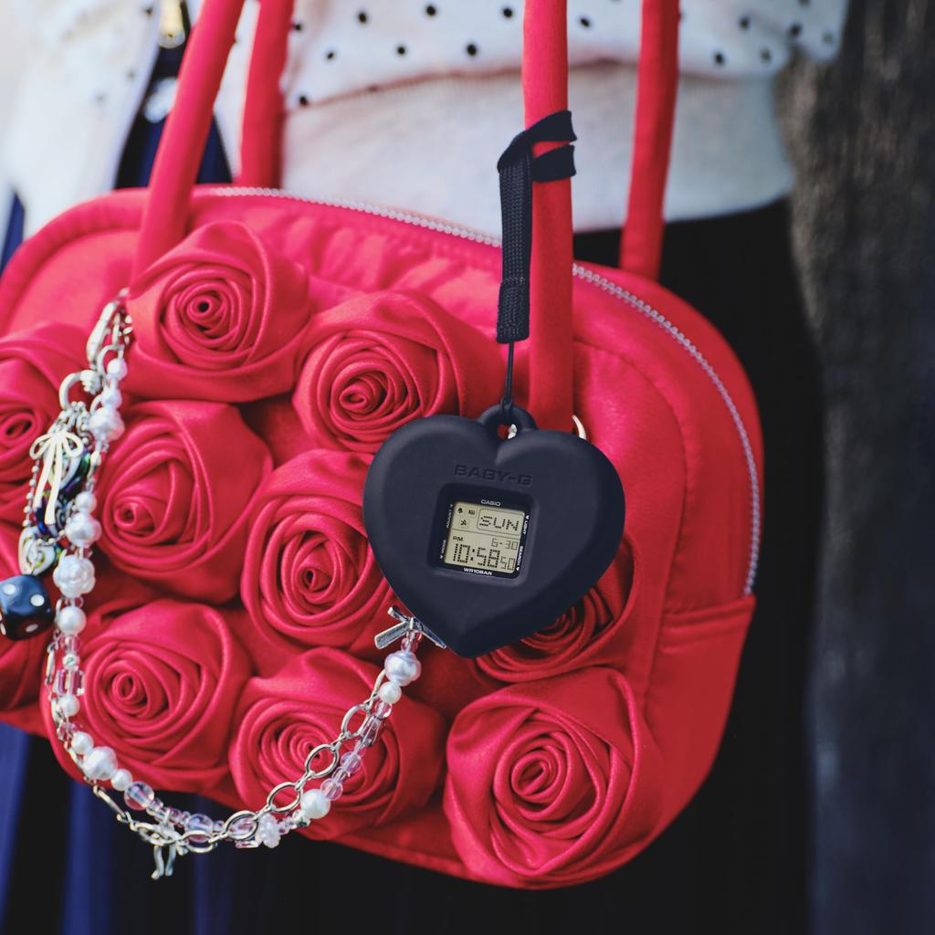 Представляем модель в поп-стиле с держателем для часов в форме сердца из серии «BABY-G+PLUS», которая позволяет вам настроить часы по своему вкусу.