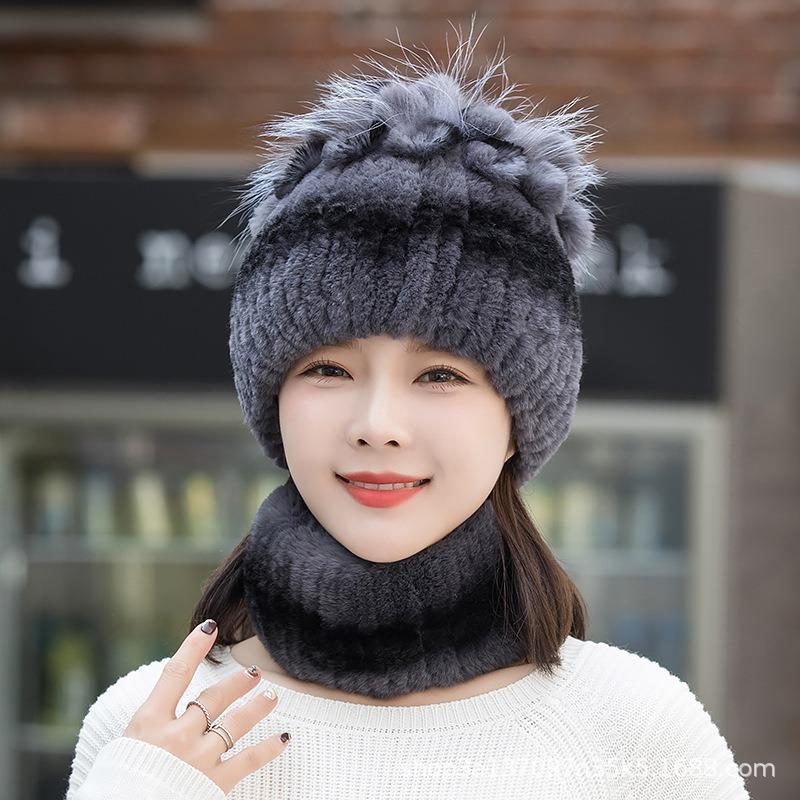 Новая вязаная шапка из кроличьего меха рекс, женская осенне-зимняя утолщенная с защитой ушей, теплая эластичная вязаная меховая шапка-шарф