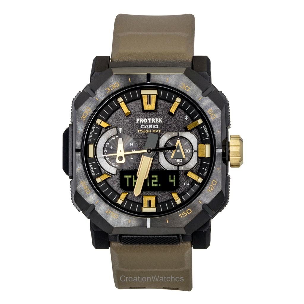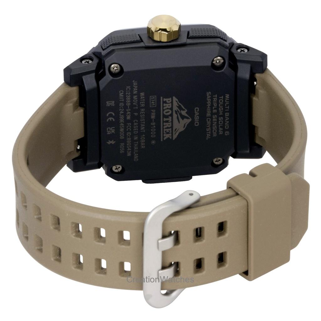 Casio Pro Trek Аналогово-цифровые с Bluetooth Коричневый ремешок из каучука Черный циферблат Солнечные PRW-B1000-5 100M Мужские часы