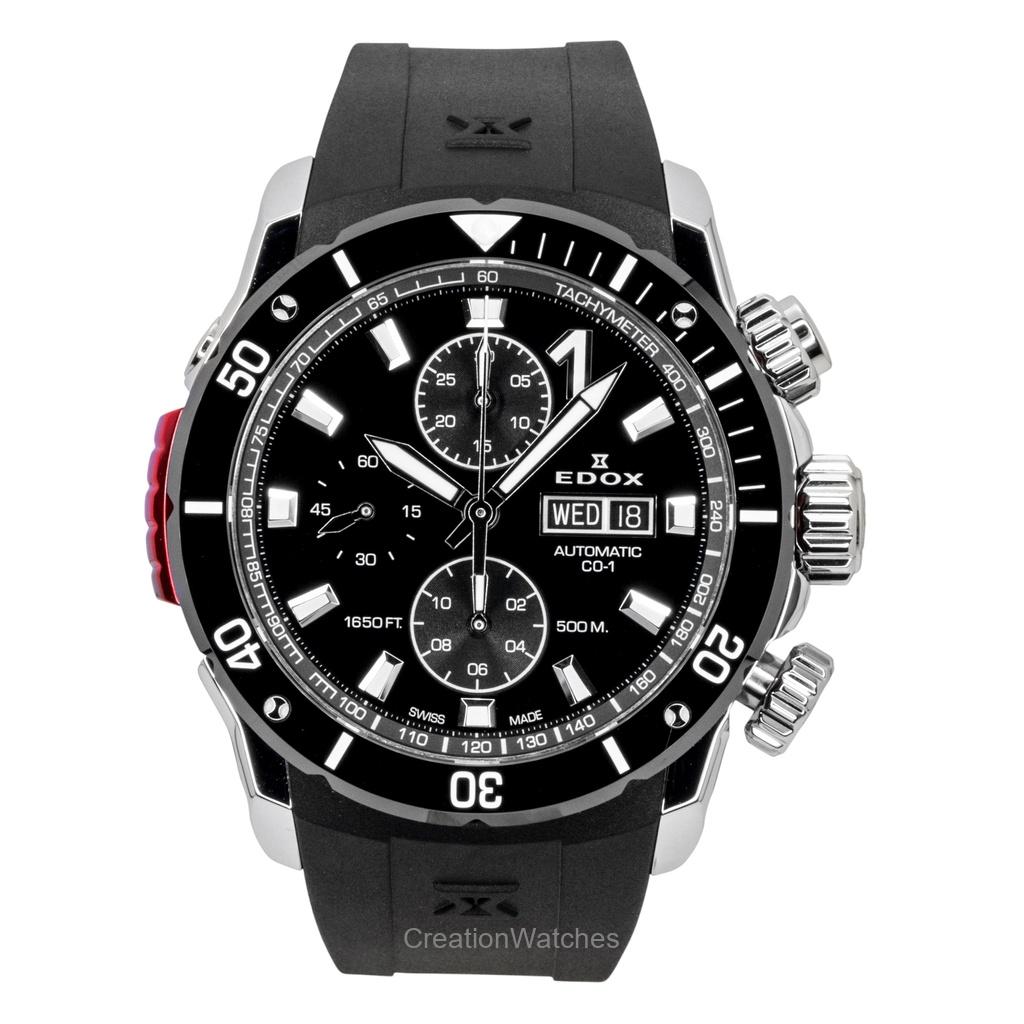 Edox CO-1 Хронограф Каучуковый ремешок Черный циферблат Автоматические Дайверские 01128-3NRCA-NN 500М Мужские часы