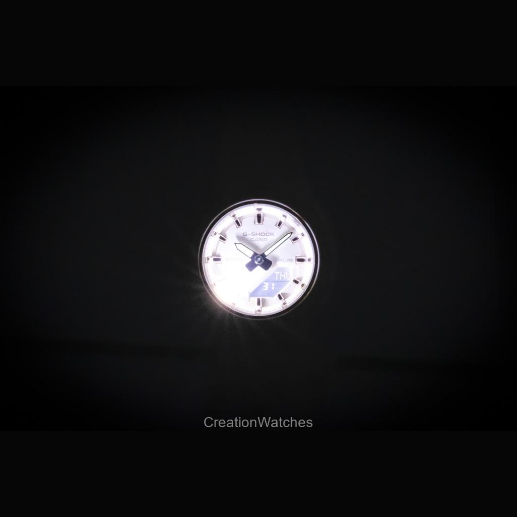 GMA-P2110-4A привносит мягкую, изысканную палитру в легендарную прочность G-Shock. Он оснащен корпусом Carbon Core Guard диаметром 40,5 мм, изготовленным из биополимера — устойчивого материала, полученного из возобновляемых органических ресурсов.. Восьмиугольный безель был усовершенствован гладкой, чистой отделкой, удалив традиционную углубленную гравировку, чтобы подчеркнуть его минималистичную, ювелирную эстетику.