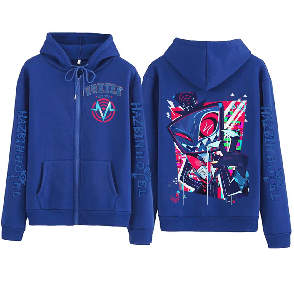 Хэзбин Отель ВОКС Дизайн Персонажа Толстовка на Молнии Мужская Женская Харадзюку Пуловер Топы Длинный Рукав Уличная Одежда Свитшот