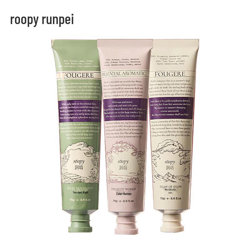 Indulge your hands with the Runpei Scented Plant Extract Hand Cream Trio Set. This set includes three 75g tubes in unique fragrances: Melting Snow, Tea Dye, and Dusk. Formulated with plant extracts, these hand creams deeply nourish, moisturize, and hydrate, making them perfect for dry skin, especially during autumn and winter. A thoughtful gift for both men and women. Each cream has a 36-month shelf life.