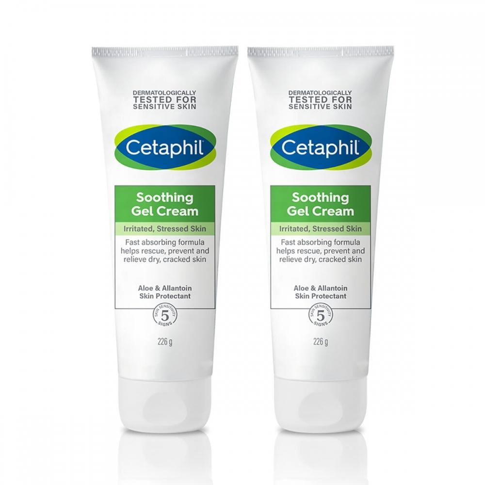 Cetaphil Soothing Gel Cream 226g x 2 is a low-irritant soothing gel cream that effectively calms skin heat and sensitive skin. It lowers skin temperature with a cooling effect, supplies moisture, and protects the skin barrier. This product can be used on both the face and body and comes in a set of two 226g jars.