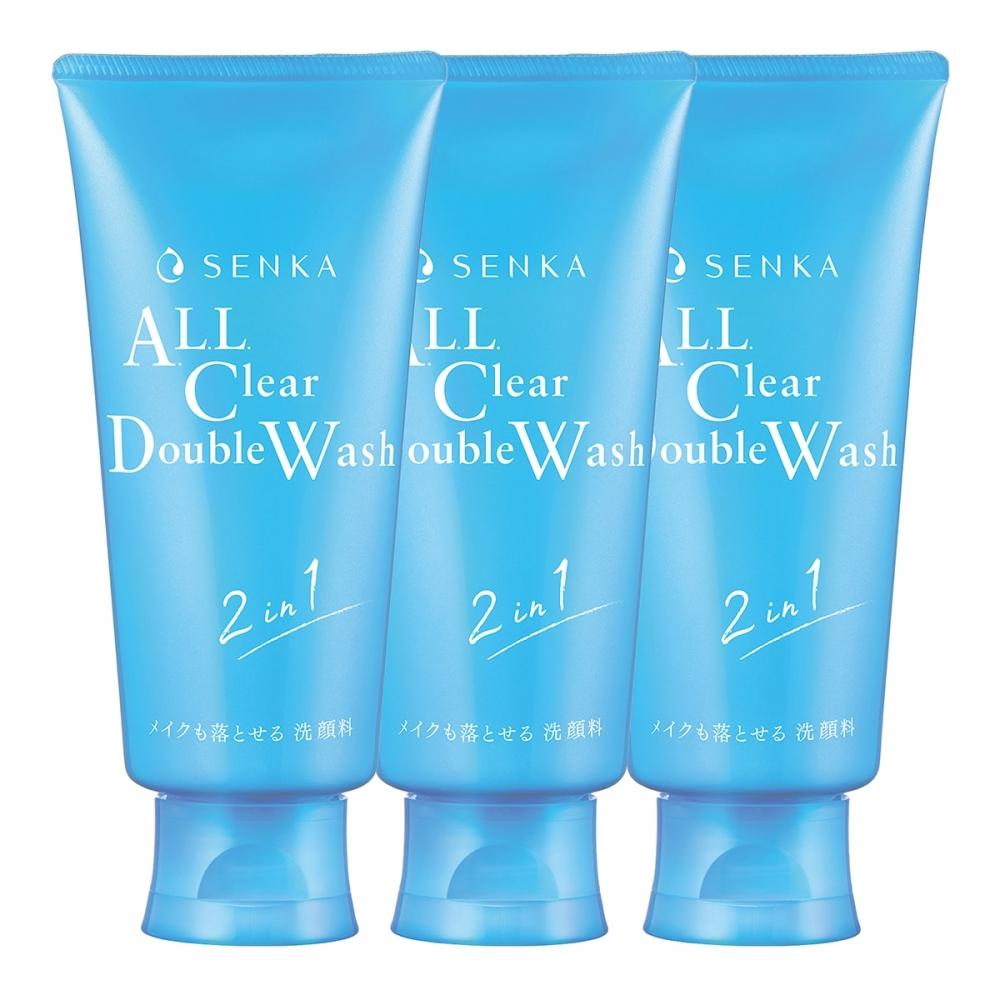 Senka All Clear Double Wash 120g x 3 is an innovative 2-in-1 remover foam that allows for both makeup cleansing and face washing simultaneously. It effectively removes cosmetic residues, impurities in pores, and dead skin cells, boasting outstanding cleansing power capable of easily removing even waterproof mascara. Suitable for all skin types, the weight of the product is 120g.