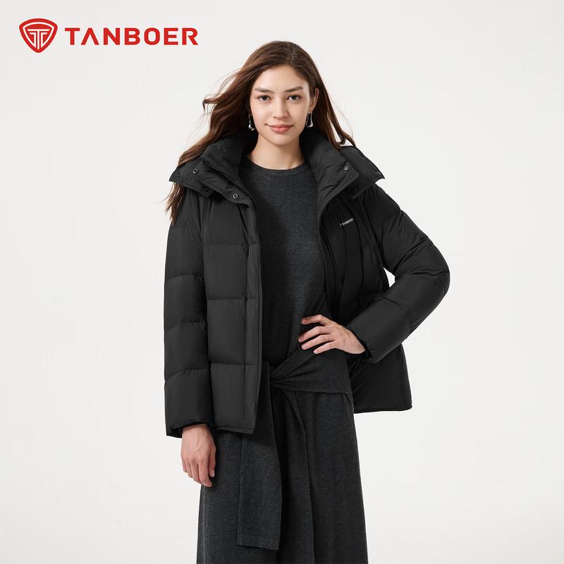 Tanboer Women's Solid Color Short Down Jacket with Detachable Hood