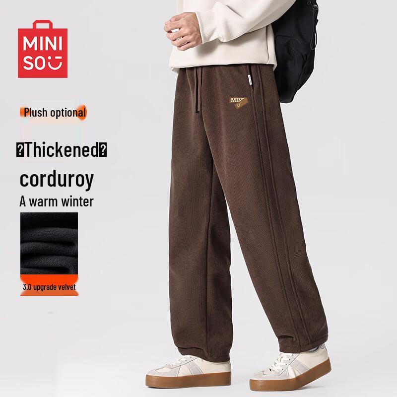 MINISO Мужские зимние вельветовые брюки прямого кроя на шерстяной подкладке