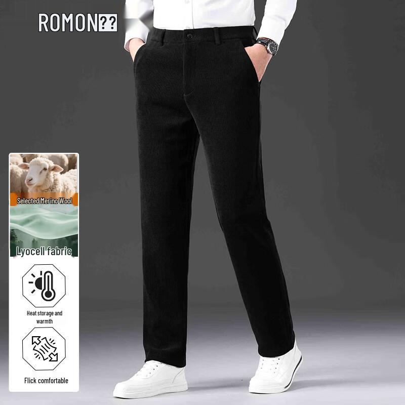 Romon Men's Business Anti-Wrinkle Wool Blend Trousers