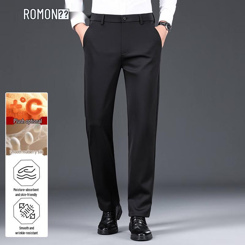 Romon Men's Mulberry Silk Blend Business Casual Straight Leg Pants