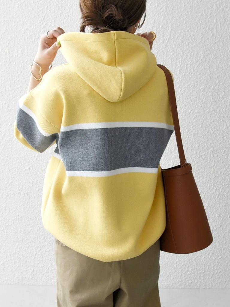 Ships Any Hand Washable Color-Scheme Line Sweat-Like Hoodie Knit 726050095 Yellow One Size