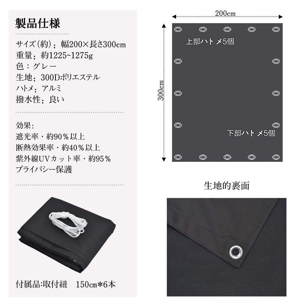 Тент-маркиза HIRARI, 2x3м, Водоотталкивающий, Защита от дождя, Серый