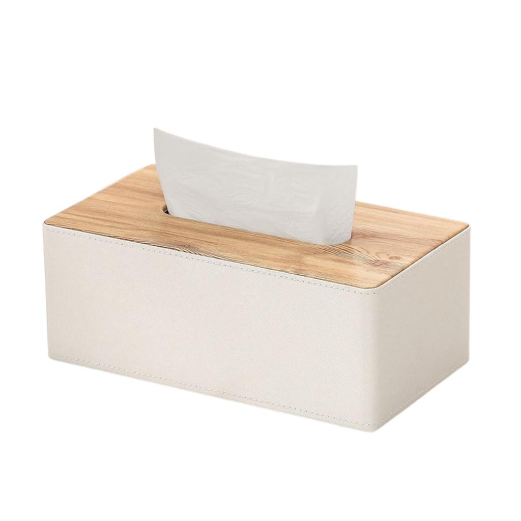 Golspia Tissue Box, Fits Boxes, Desktop Storage, Hard Type with Lid, Horizontal Storage, Wood Grain, White