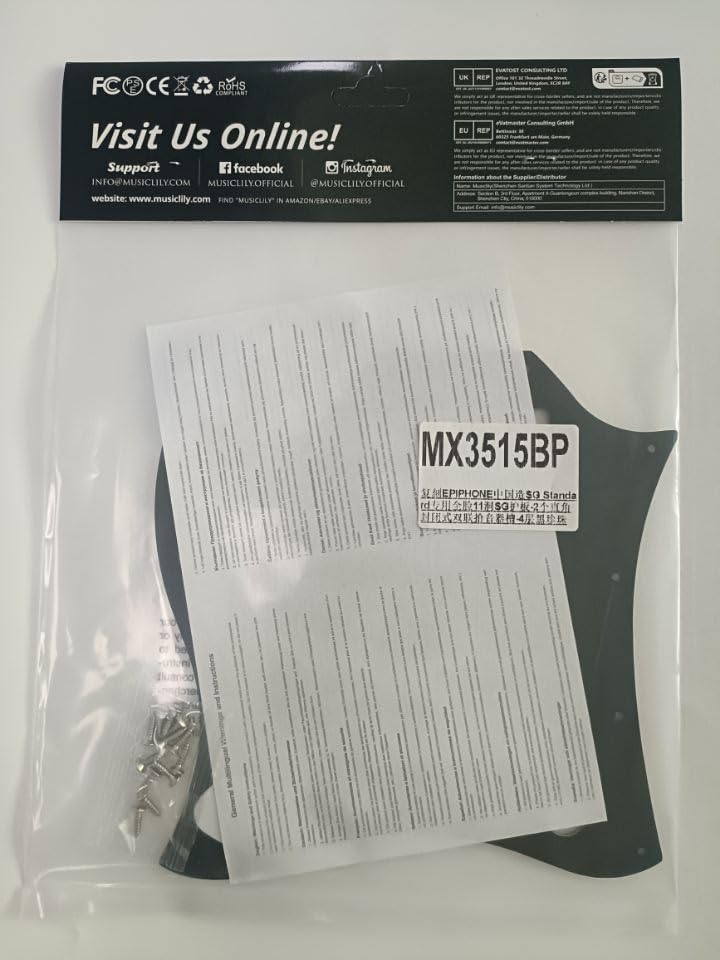 Musiclily Pro 11-Hole Full-Face Guitar Large Pickguard for EPI SG Standard Electric Guitars (Made in China), 4-Piece Set, Black Pearl