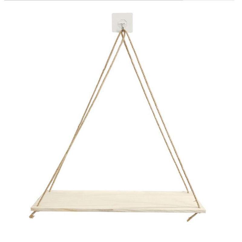 Wooden Rope Swing Wall Hanging Plant Flower Pot Tray Mounted Floating Wall Shelves Nordic Home Decoration Moredn Simple Design