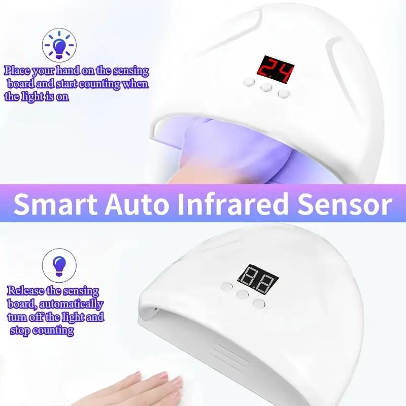 5.High performance:Fast drying of UV LED nail lamp,no pain and not dazzling,won't black hands.Smart display time,you can clearly know the working state of the nail lamp,convenient for use.