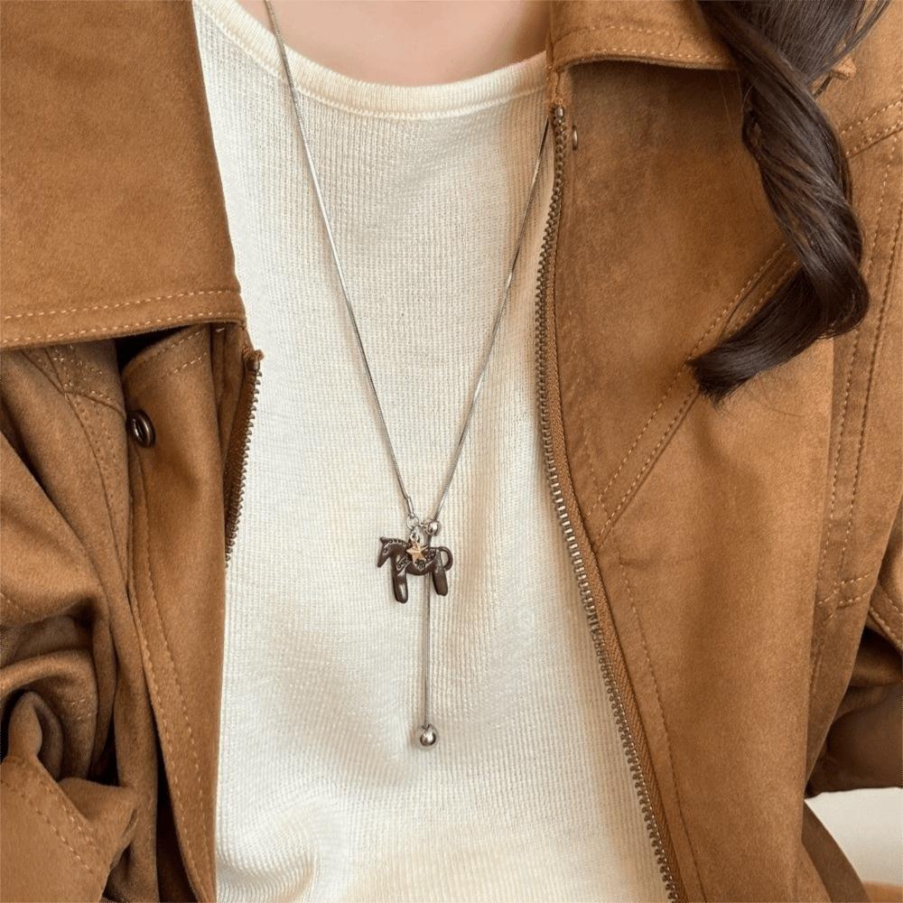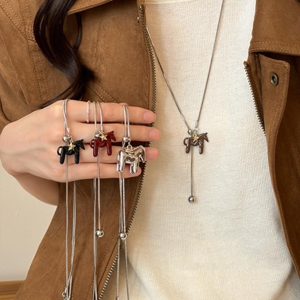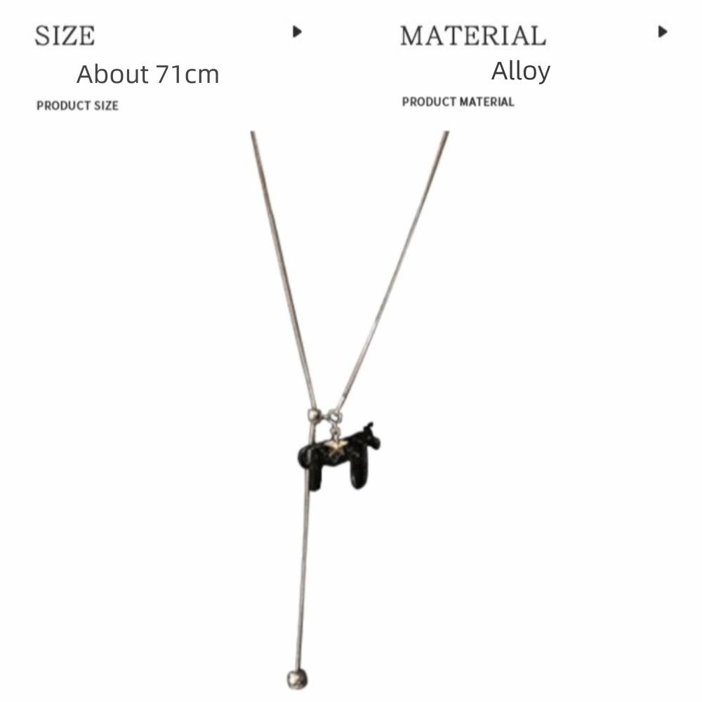Длинное ожерелье-подвеска с лошадью, посеребренная Y-образная цепочка, винтажное эмалевое ожерелье-подвеска для женщин
