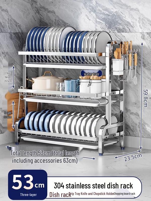 Cream Style 3-Tier 304 Stainless Steel Dish Drying Rack